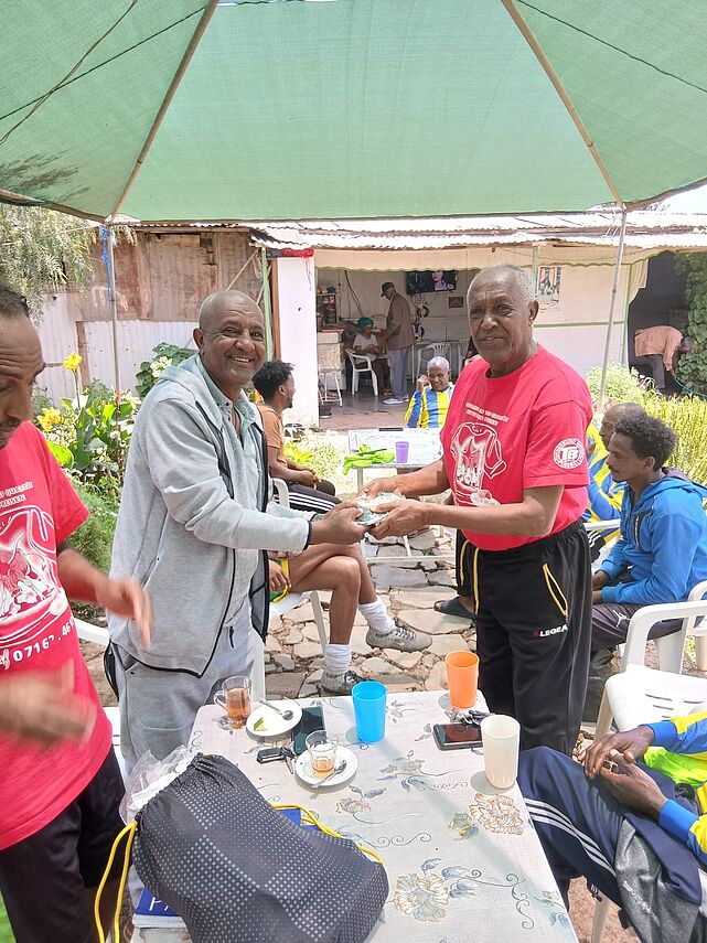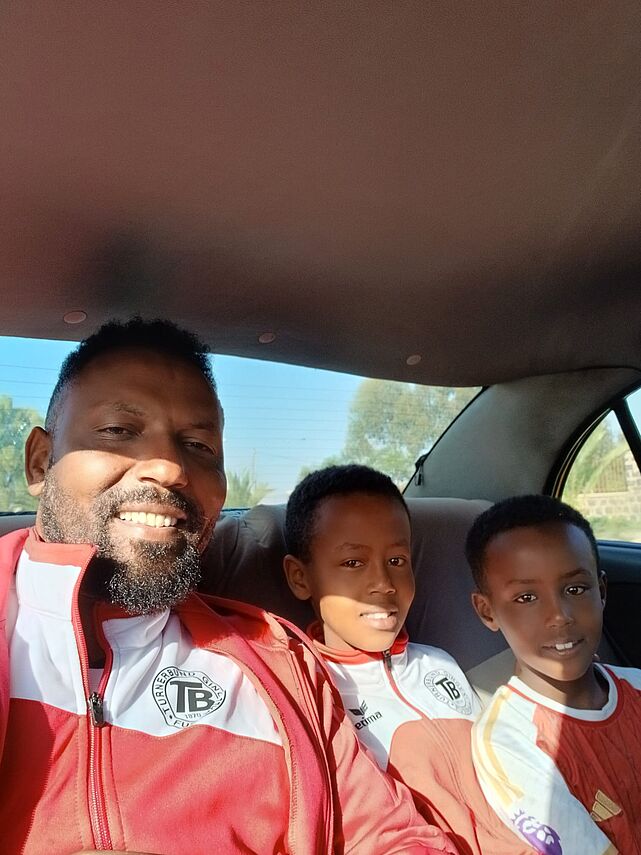 Inzwischen hat Awet in Eritrea einen Partnerverein gefunden, den er regelmäßig unterstützt. Der Verein, der erst im Jahre 2017 gegründet wurde, trägt den Namen SC Awet – ein passender Zufall! Mit Unterstützung von TB-Vorständin Hanna Wachter konnte 2025 ein eigenes Logo für den Verein entworfen werden.
